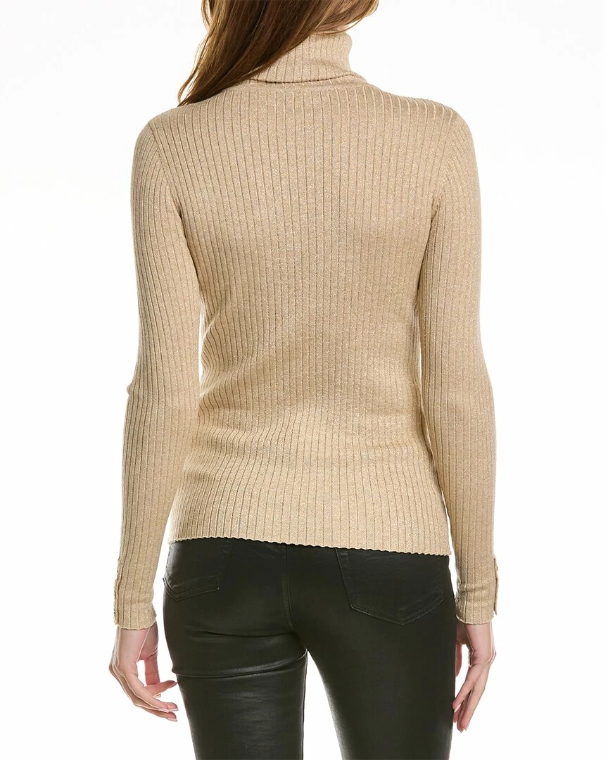 - Arlette Sweater in gold with metallic rib knit, turtleneck and button accents at cuffs