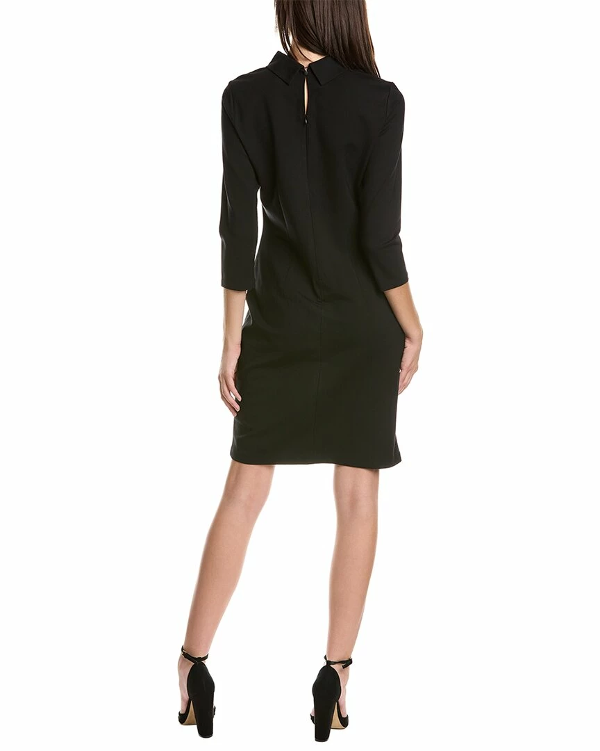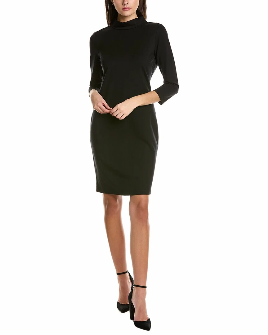 - Bertha Sheath Dress in black with mock neck and 3/4-length sleeves