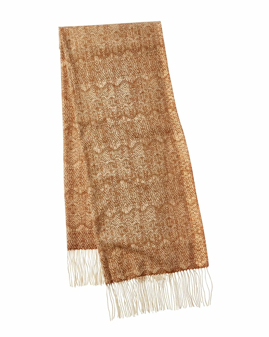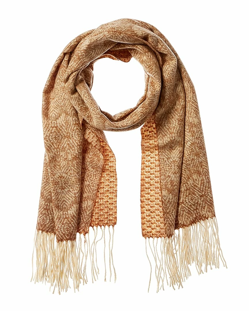 - Jaipur Imogen Flora Cashmere Scarf in brown/tan with reversible wear and 4in fringe