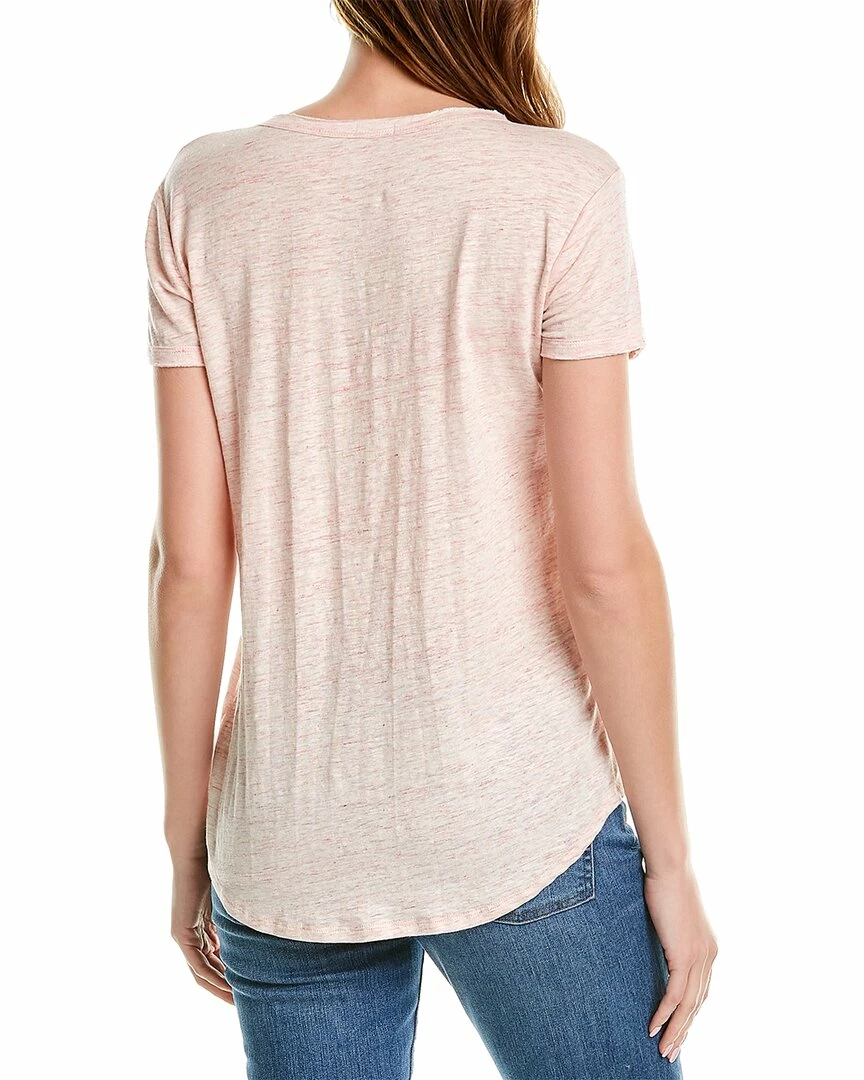 - Kacey Linen-Blend Top in soft petal with V-neck and raw edge hem