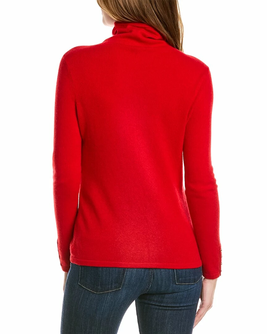 - Kitt Cashmere Sweater in red with funnel neck and button cuffs