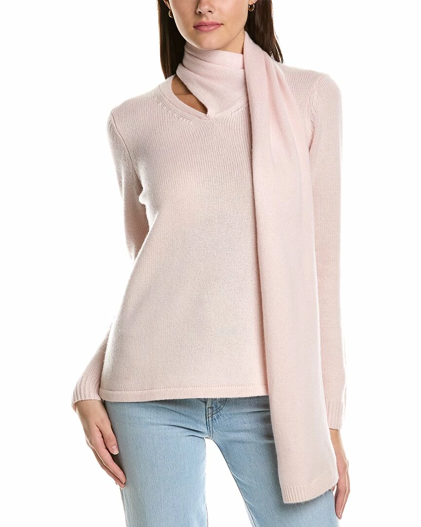 - Krissa Cashmere Sweater in petal pink with attached sash at neck