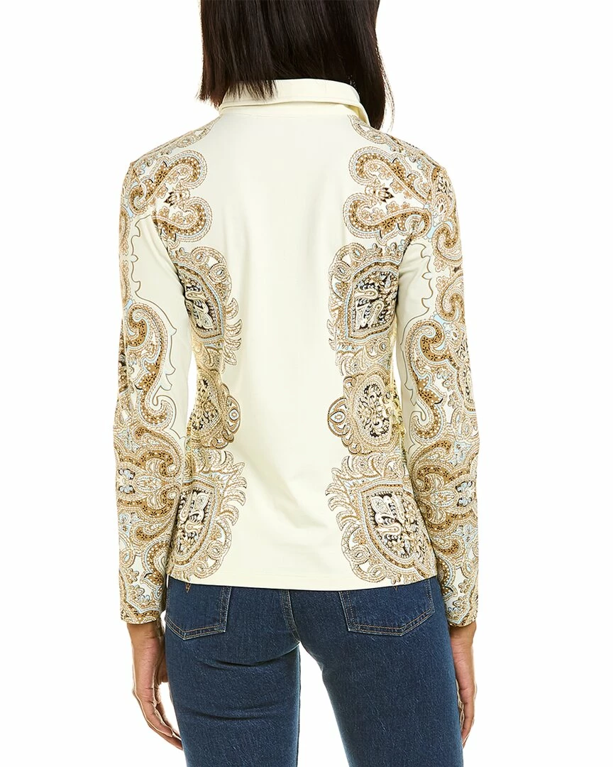 - Lauderdale Catalina Cloth Polo Shirt in off white & tan insignia paisley with spread collar and 3/4-length sleeves