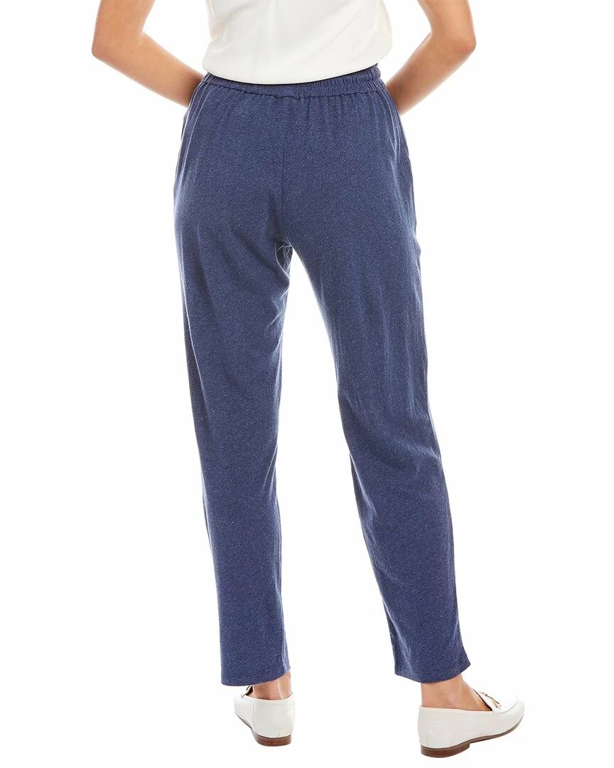 - Marion Linen-Blend Pant in dark denim with dual front angled pockets and elasticized drawstring waistband