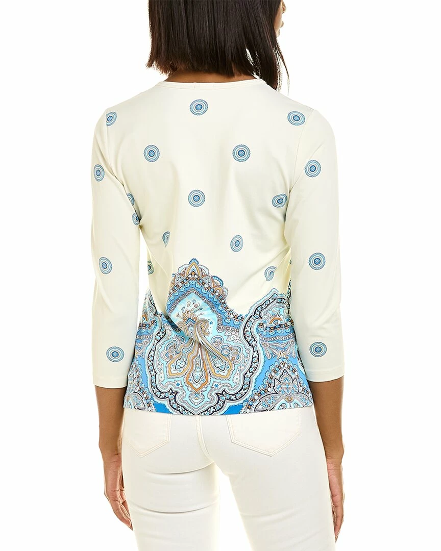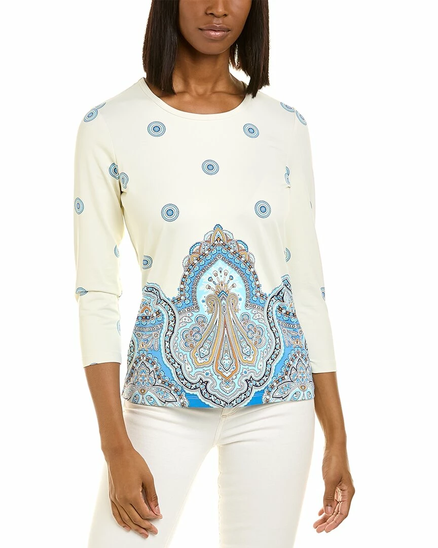 - Signature Catalina Cloth T-Shirt in off white & azure blue raja pais with 3/4-length sleeves