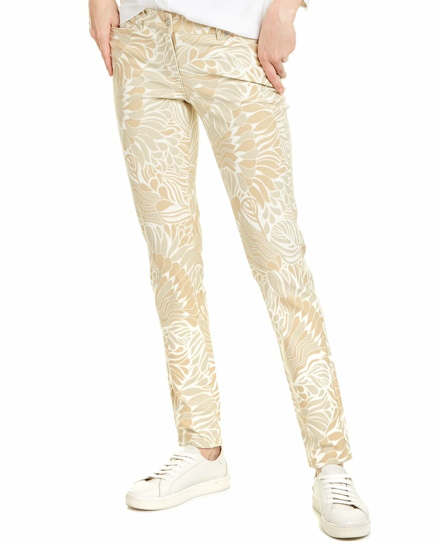 - Terre Floral Lexi Pant in off white/khaki with belt loops and classic five-pocket styling