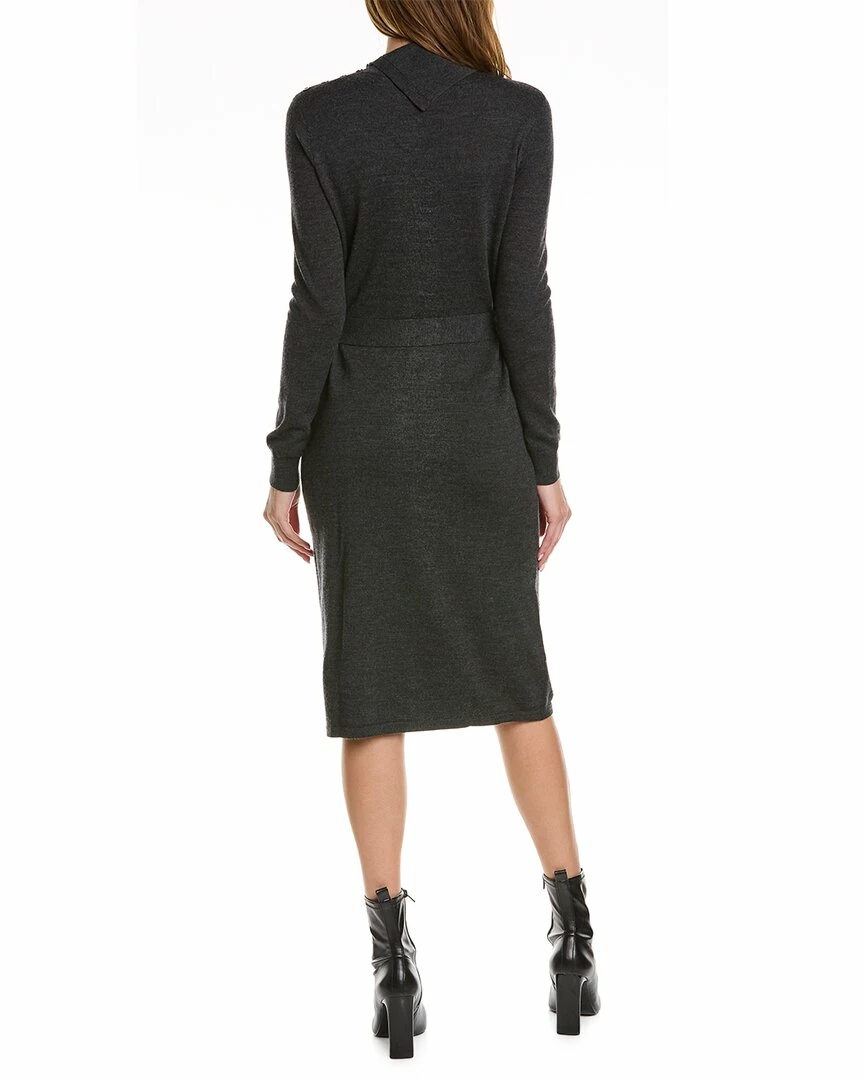 - Thom Wool Sweaterdress in charcoal with button collar and self-tie sash at waist